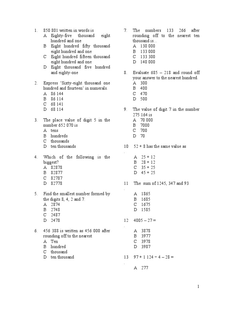 Soalan Matematik Tingkatan 1 Ujian Mac